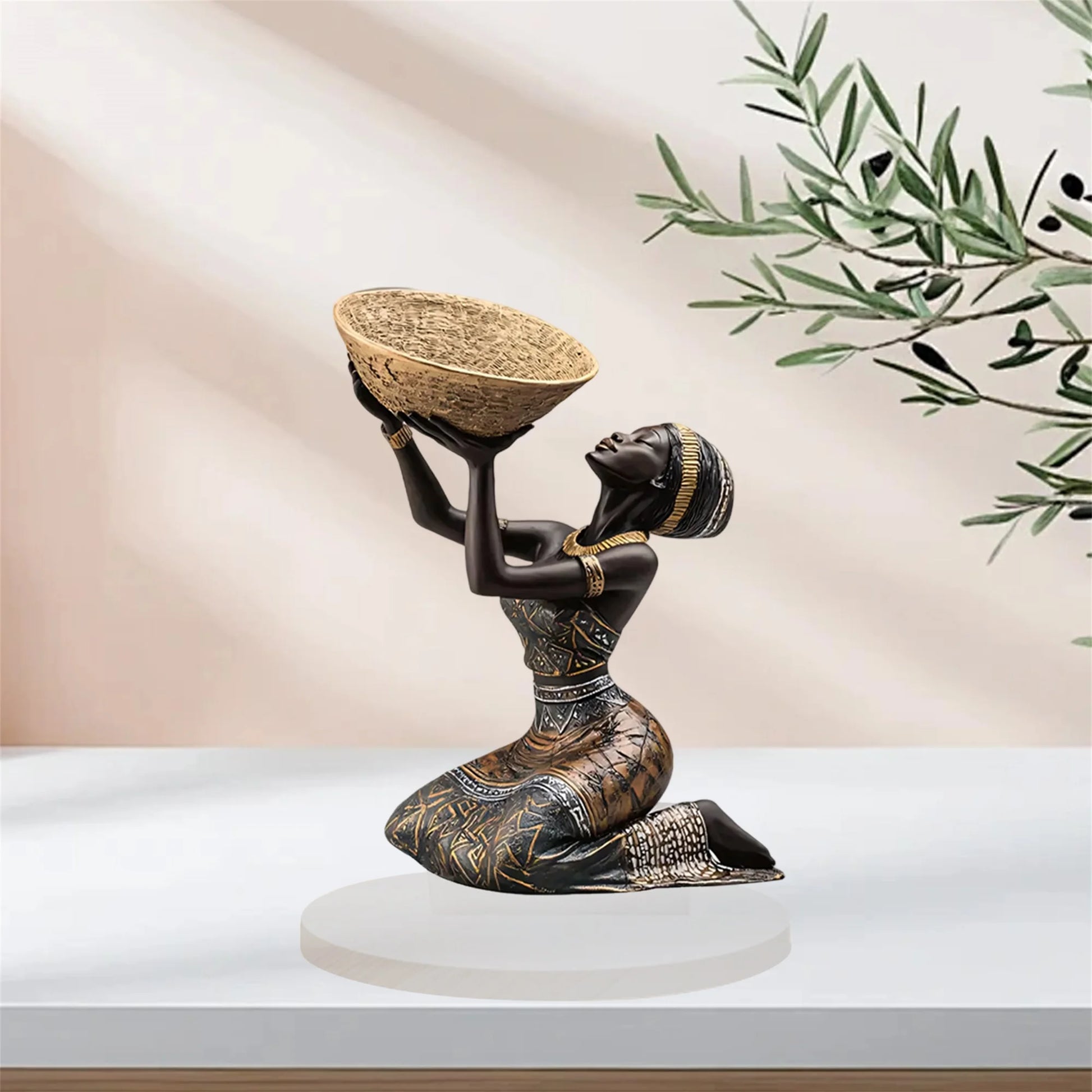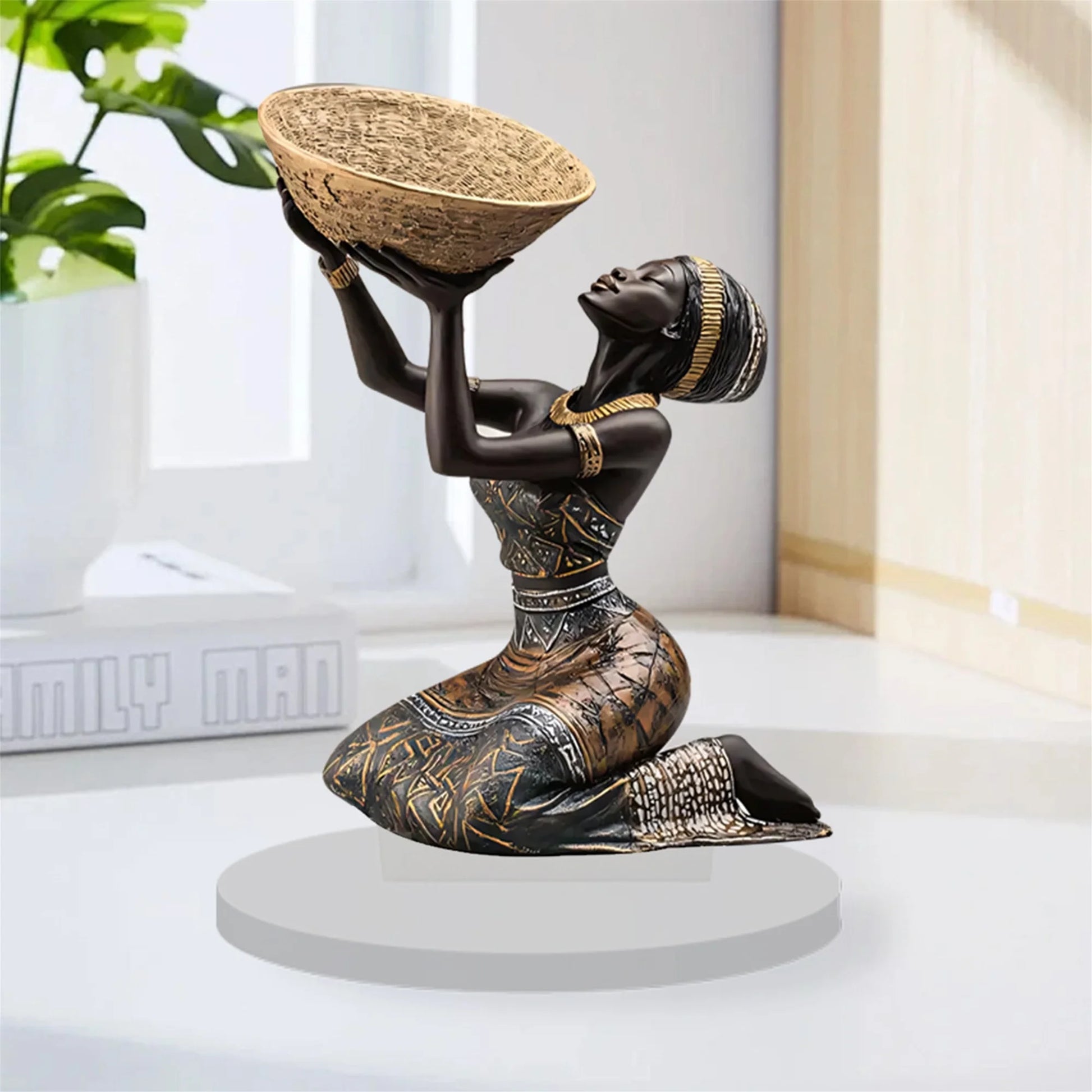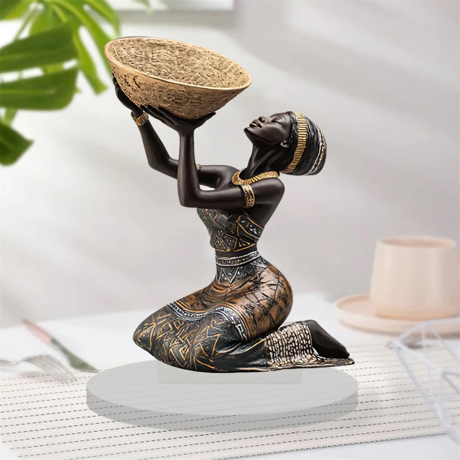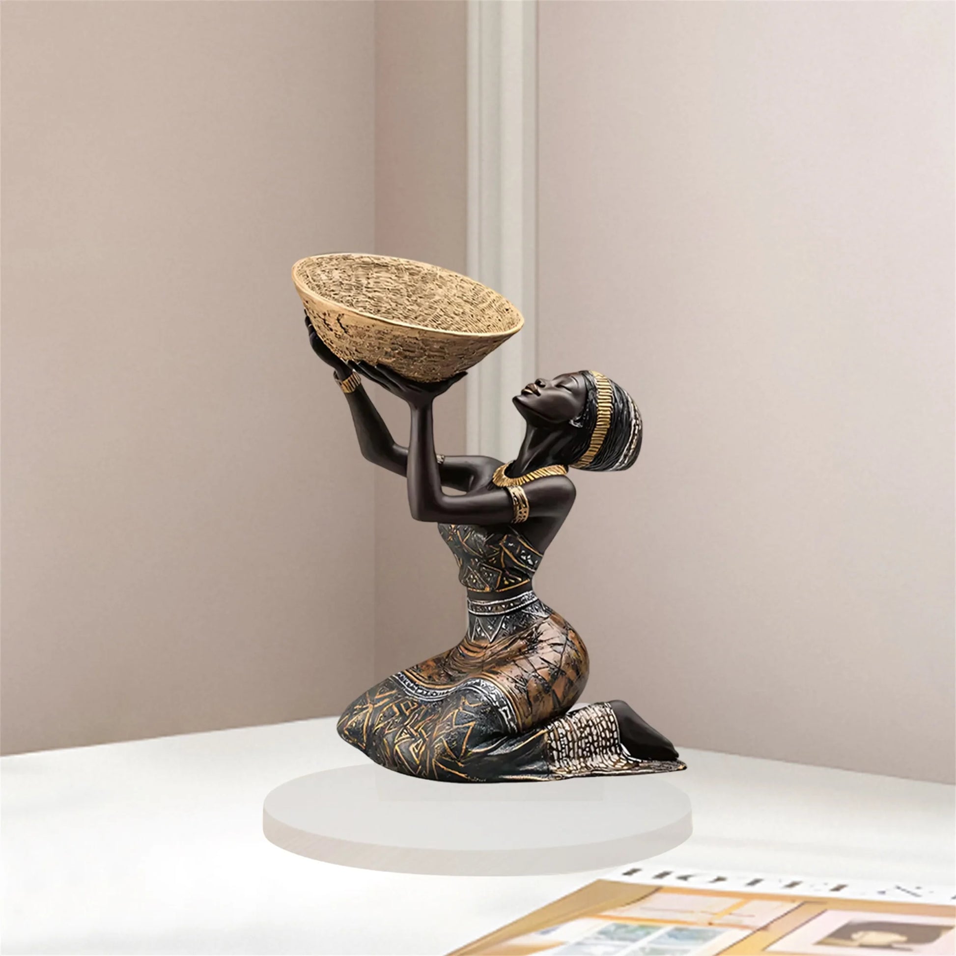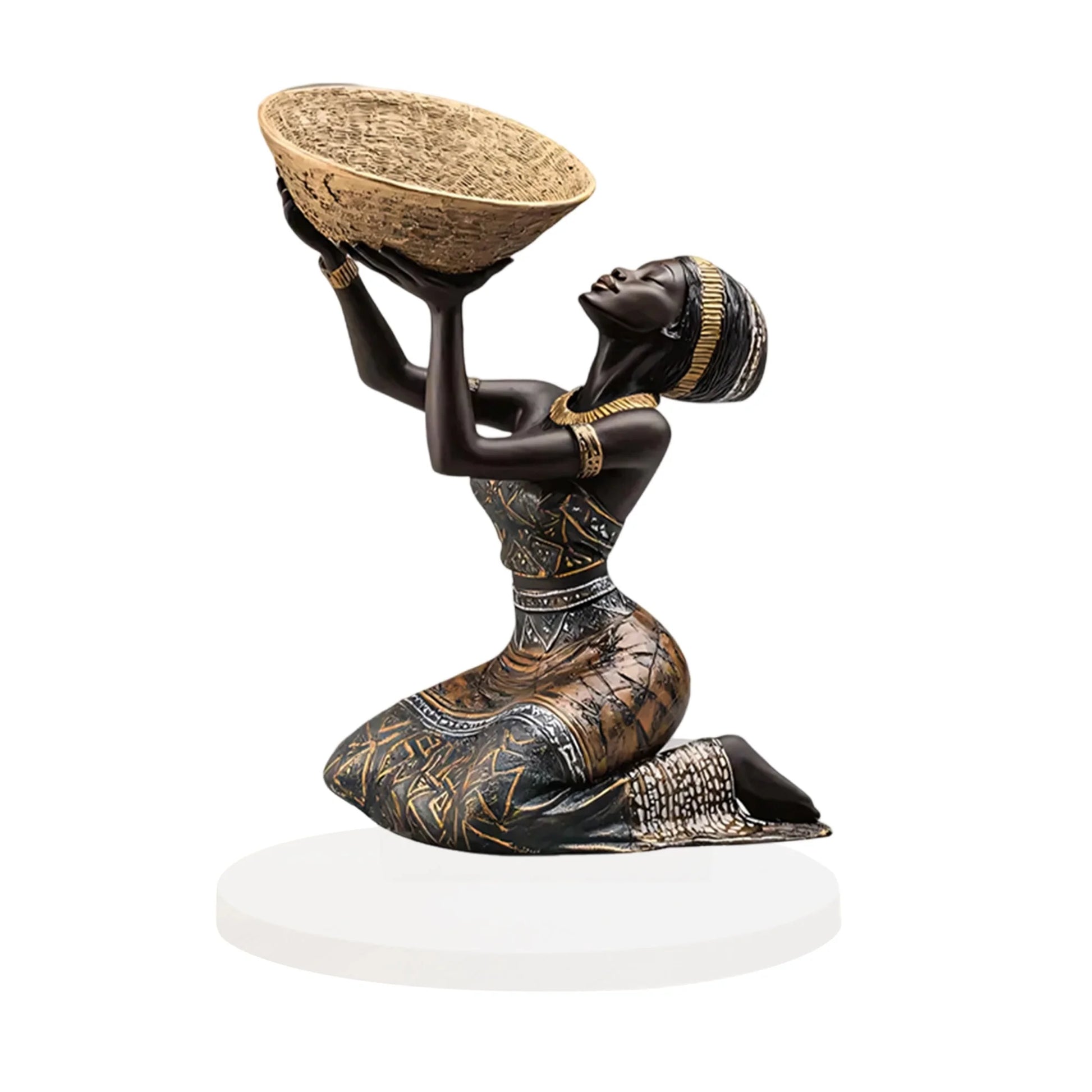 African Tribal Lady Figurine. Acrylic. Multicolor. Seated.